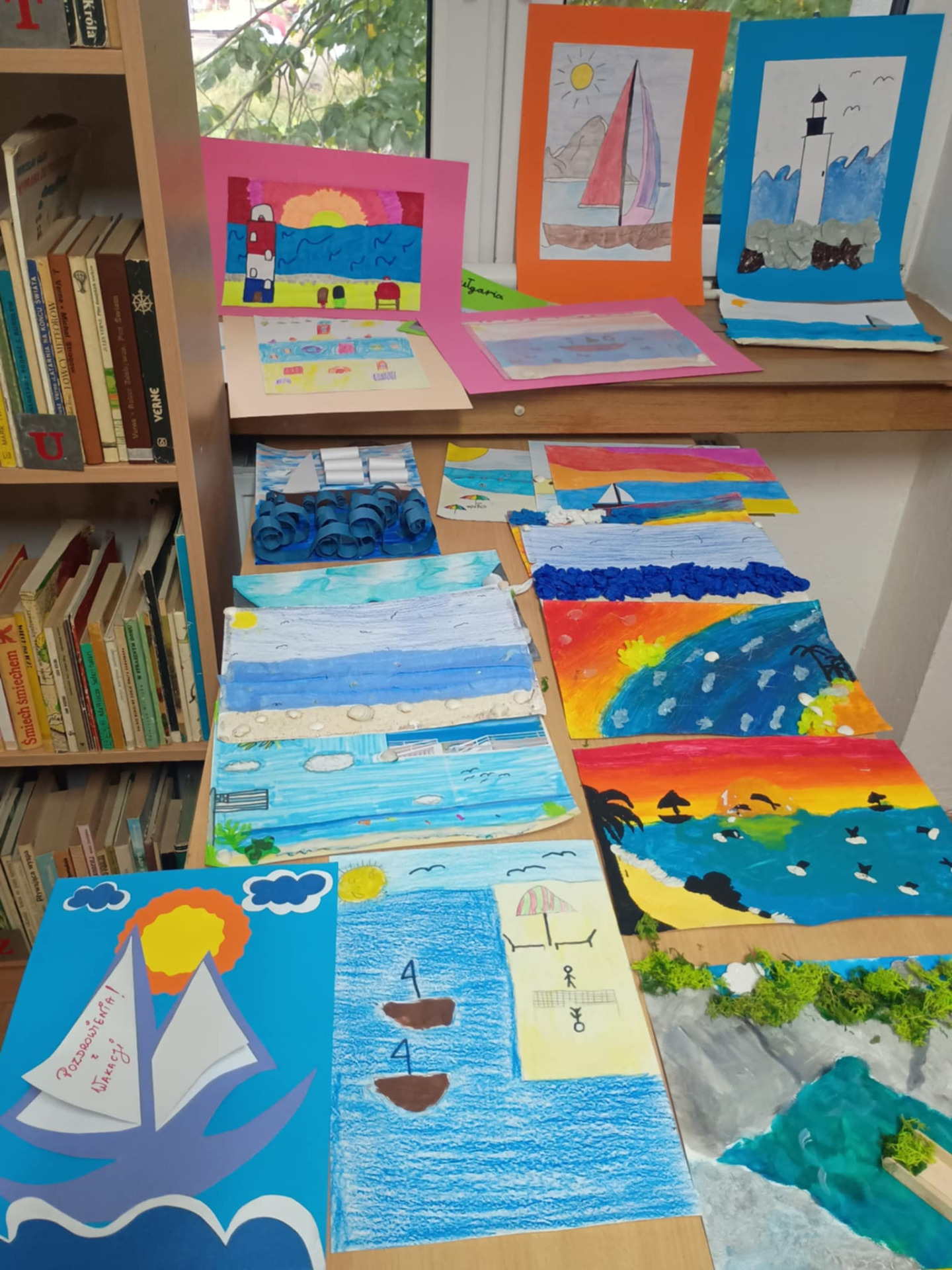 Dzieci miały za zadanie przedstawienie pięknych miejsc, w których były w czasie wakacji. Technika prac była różnorodna, więc było co podziwiać.
